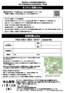 【問合先】一般社団法人広島県精神保健福祉協会 事務局 TEL:082-516-8221