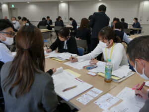 プラチナ認証法人交流会は「魅力ある福祉・介護の職場宣言ひろしま」制度においてプラチナ認証を取得し、福祉・介護事業を運営する社会福祉法人、株式会社等が対象となっており、この度は29法人の採用・人事担当者等が集い、人材の定着・育成について、実際に取り組みを行っている法人の事例発表や意見交換等を行いました。